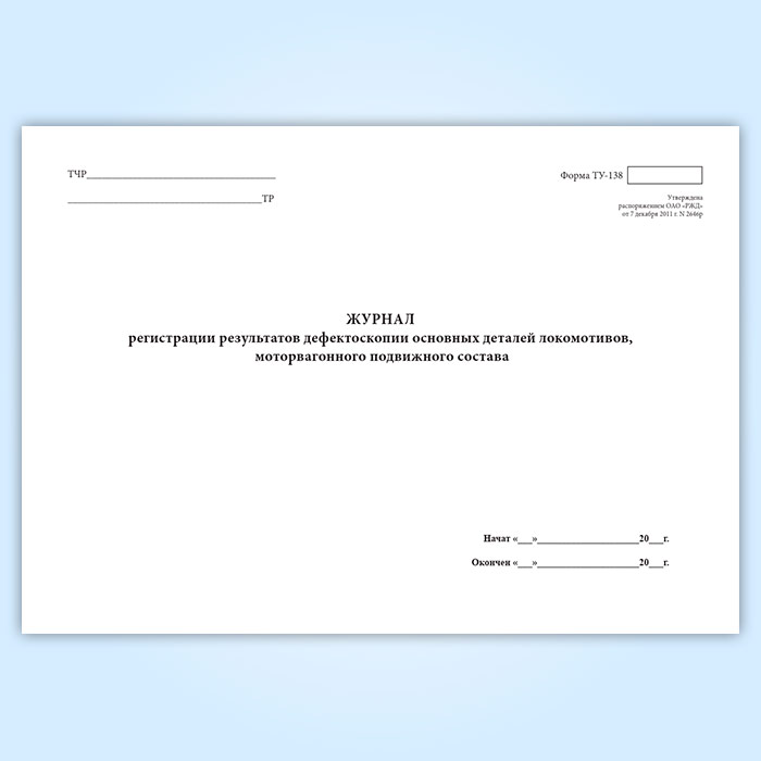 Журнал регистрации результатов дефектоскопии основных деталей локомотивов, моторвагонного подвижного состава (форма ТУ-138) в Хотьково купить