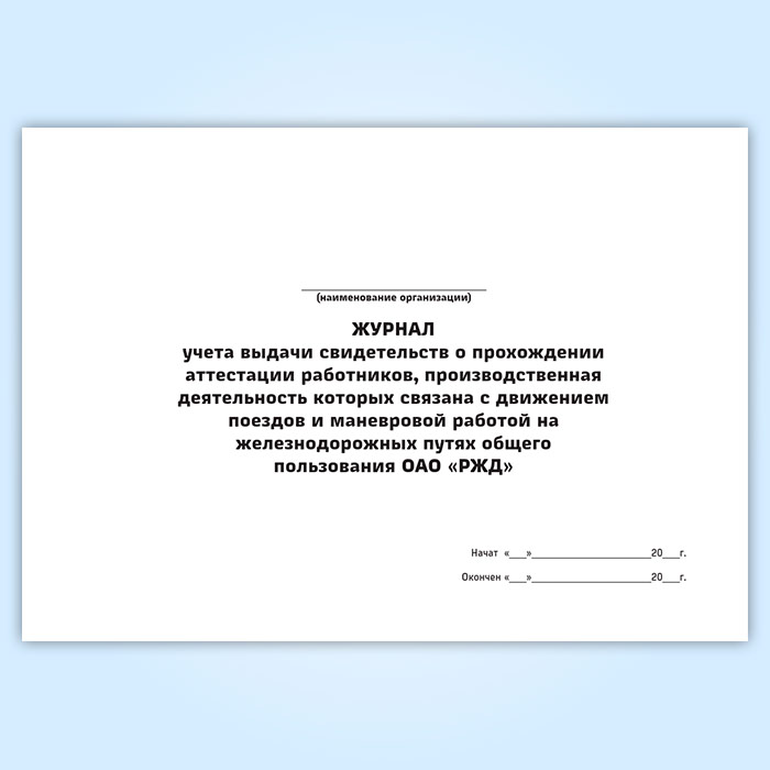 Журнал учета выдачи свидетельств о прохождении аттестации работников, производственная деятельность которых связана с движением поездов и маневровой работой на железнодорожных путях общего пользования ОАО «РЖД» в Хотьково купить