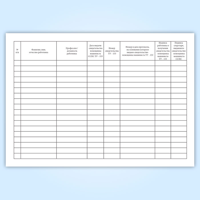 Журнал выдачи и регистрации удостоверений помощника машиниста ССПС (форма ТУ-153) в Хотьково купить