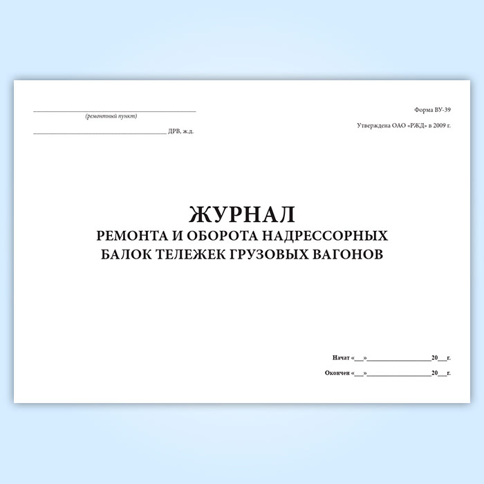 Журнал ремонта и оборота надрессорных балок тележек грузовых вагонов (форма ВУ-39) в Хотьково купить