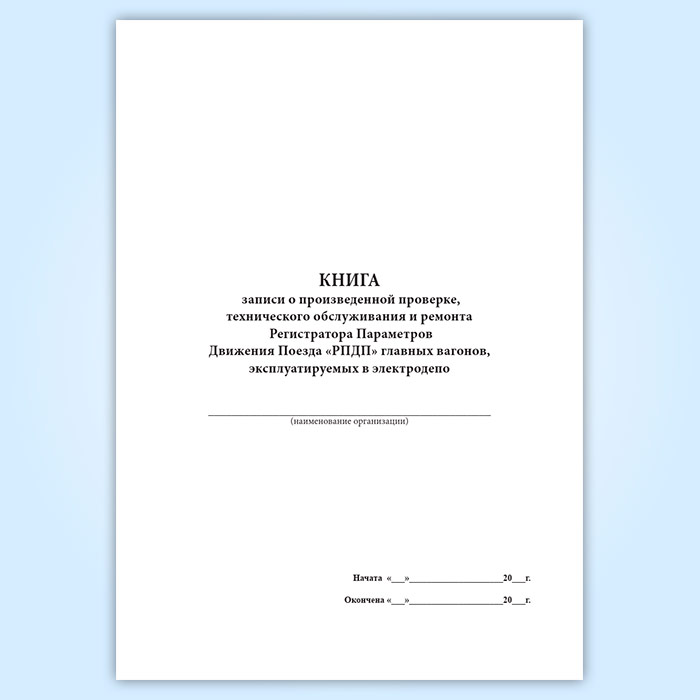 Книга записи о произведенной проверке, технического обслуживания и ремонта Регистратора Параметров Движения Поезда «РПДП» главных вагонов, эксплуатируемых в электродепо в Хотьково купить