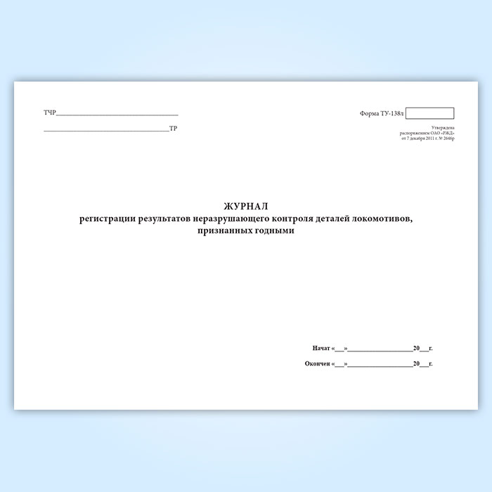 Журнал регистрации результатов неразрушающего контроля деталей локомотивов, признанных годными (форма ТУ-138л) в Хотьково купить