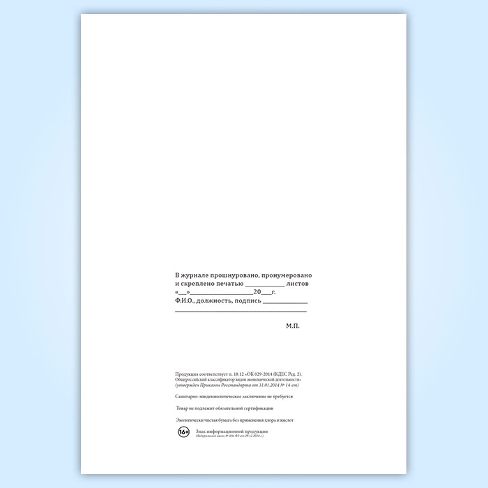 Вы получаете печатную продукцию прошнурованной и c местом для вашей печати в соответствии с действующими нормативными документами: