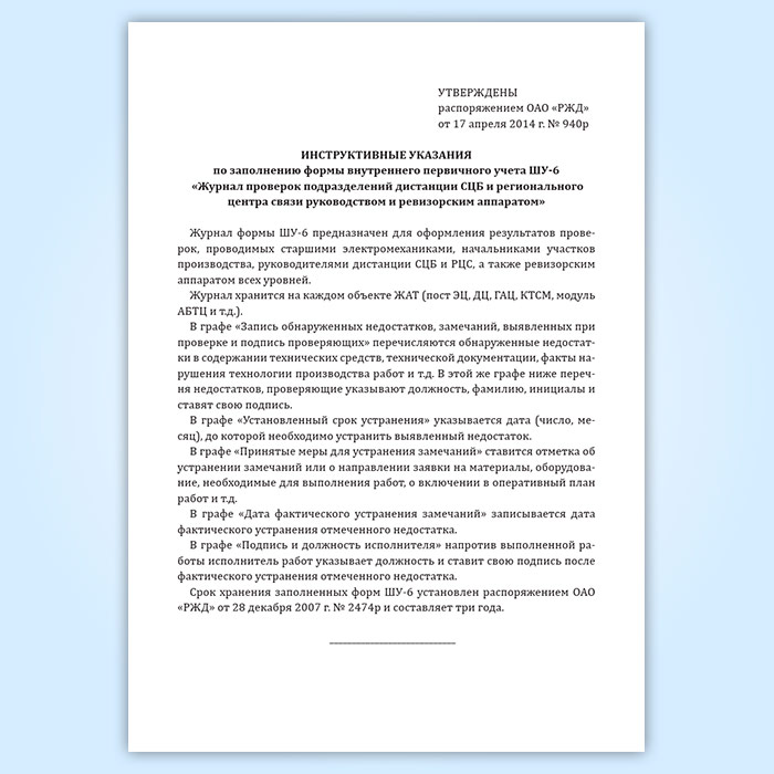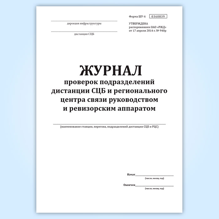 Журнал проверок подразделений дистанции СЦБ и регионального центра связи руководством и ревизорским аппаратом (форма ШУ-6) в Хотьково купить
