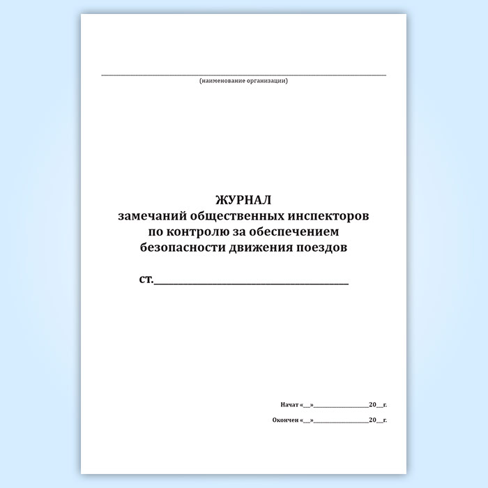 Журнал замечаний общественных инспекторов по контролю за обеспечением безопасности движения поездов в Хотьково купить