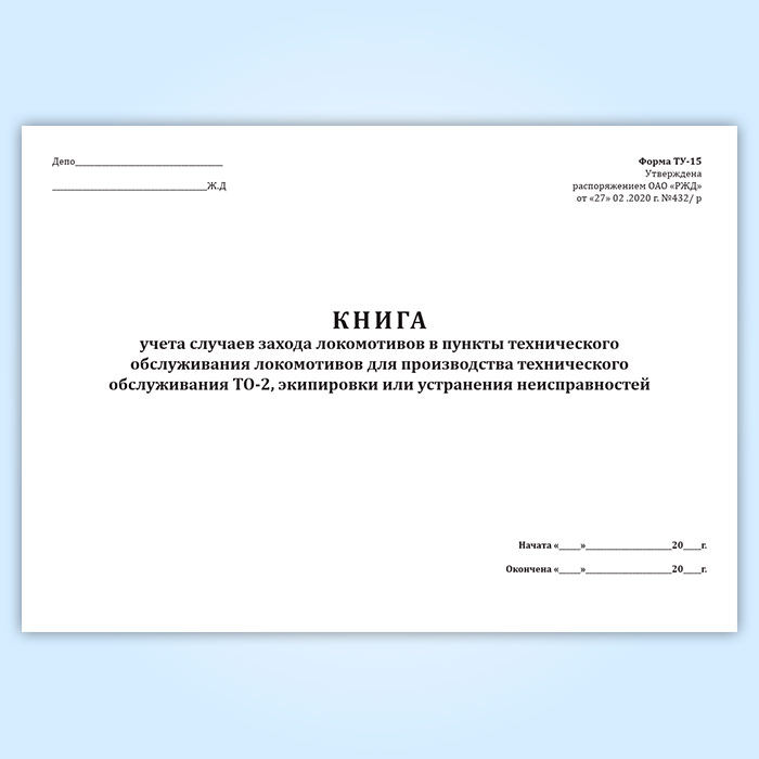 Книга учета случаев захода локомотивов в пункты технического обслуживания локомотивов для производства технического обслуживания ТО-2, экипировки или устранения неисправностей (форма ТУ-15) в Хотьково купить