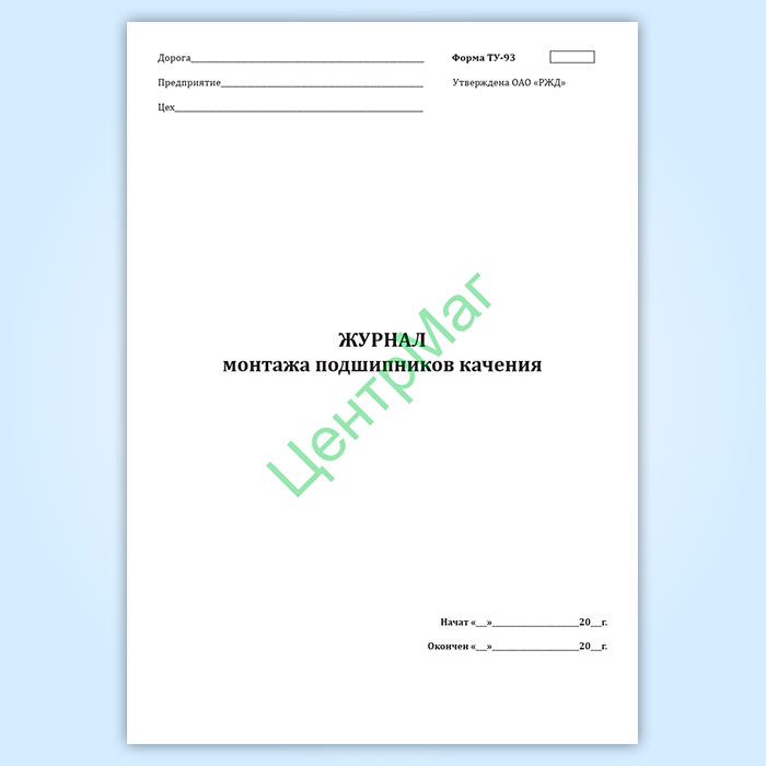Журнал монтажа подшипников качения (форма ТУ-93) в Хотьково купить