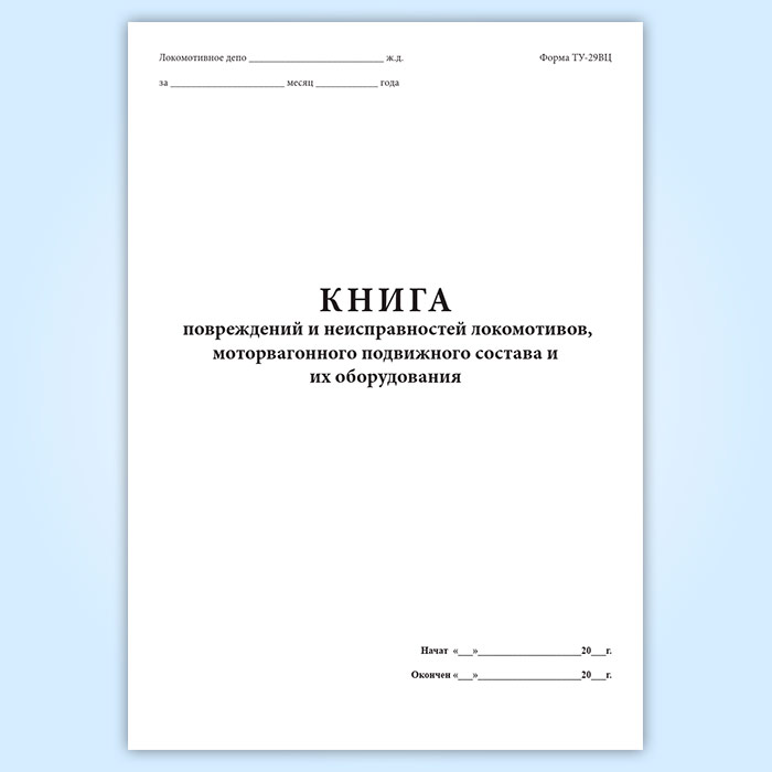 Книга повреждений и неисправностей локомотивов, моторвагонного подвижного состава и их оборудования (форма ТУ-29ВЦ) в Хотьково купить