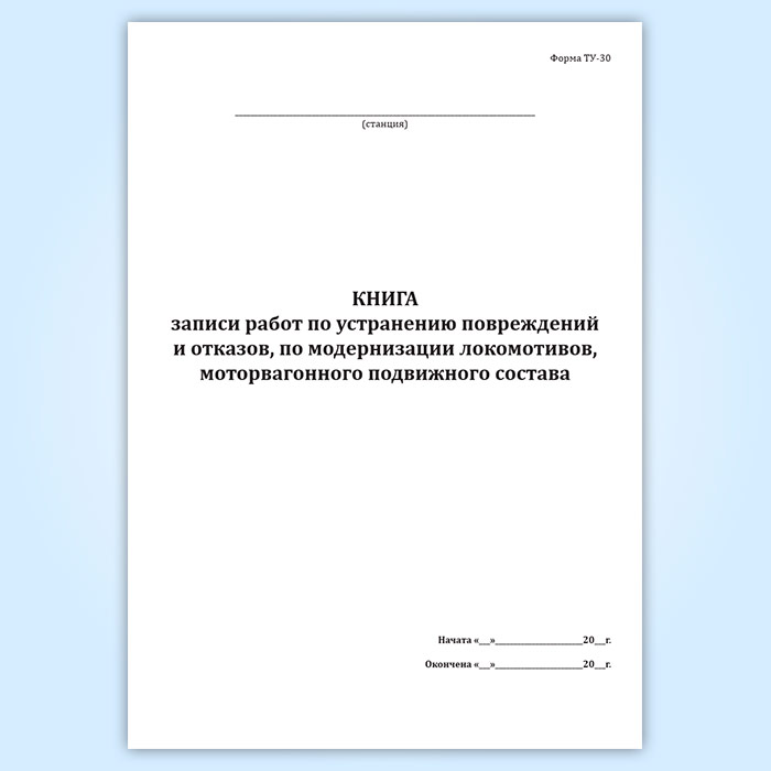 Книга записи работ по устранению повреждений и отказов, по модернизации локомотивов, моторвагонного подвижного состава (форма ТУ-30) в Хотьково купить