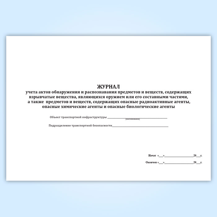 Журнал учета актов обнаружения и распознавания предметов и веществ, содержащих взрывчатые вещества, являющихся оружием или его составными частями, а также предметов и веществ, содержащих опасные радиоактивные агенты, опасные химические агенты и опасные биологические агенты в Хотьково купить