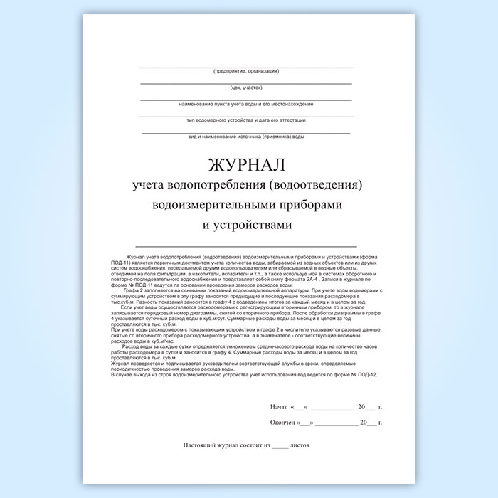 Журнал учета водопотребления (водоотведения) водоизмерительными приборами и устройствами (форма ПОД-11) в Хотьково купить