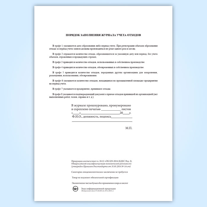 Журнал первичного учета отходов в Хотьково купить