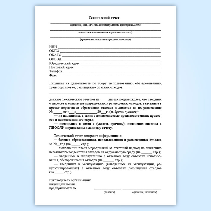 Технический отчет о неизменности производственного процесса, используемого сырья и об обращении с отходами в Хотьково купить