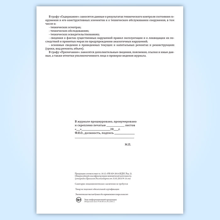 Технический журнал по эксплуатации гидротехнического сооружения в Хотьково купить