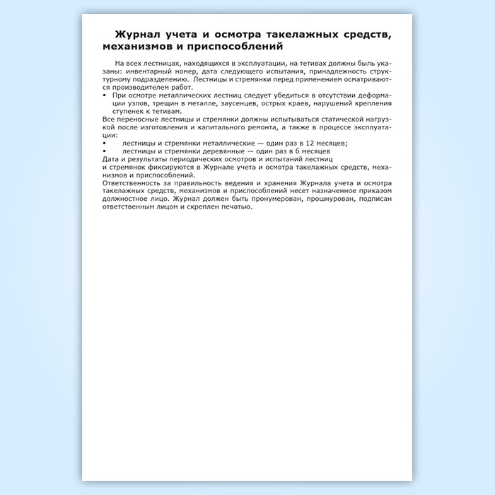 Журнал учета и осмотра такелажных средств, механизмов и приспособлений в Хотьково купить
