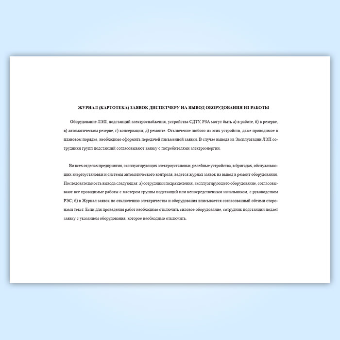 Журнал (картотека) заявок диспетчеру на вывод оборудования из работы в Хотьково купить
