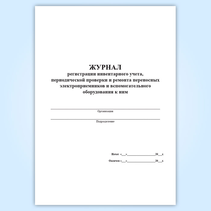 Журнал регистрации инвентарного учета, периодической проверки и ремонта переносных электроприемников и вспомогательного оборудования к ним в Хотьково купить