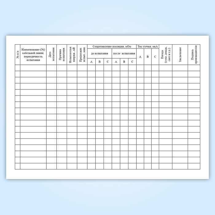 Журнал испытаний кабельных линий с повышенным напряжением (форма № 20-Э) в Хотьково купить
