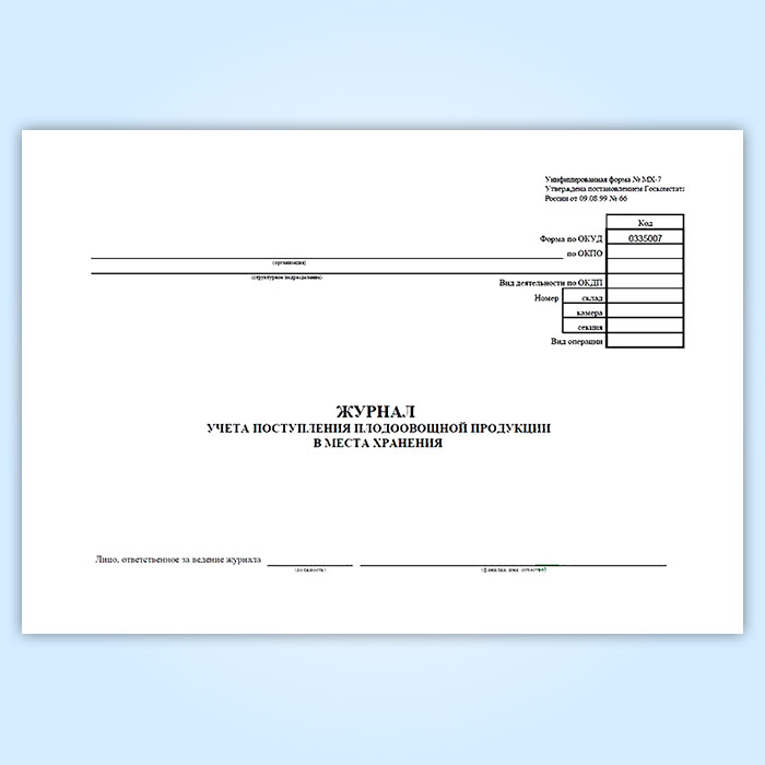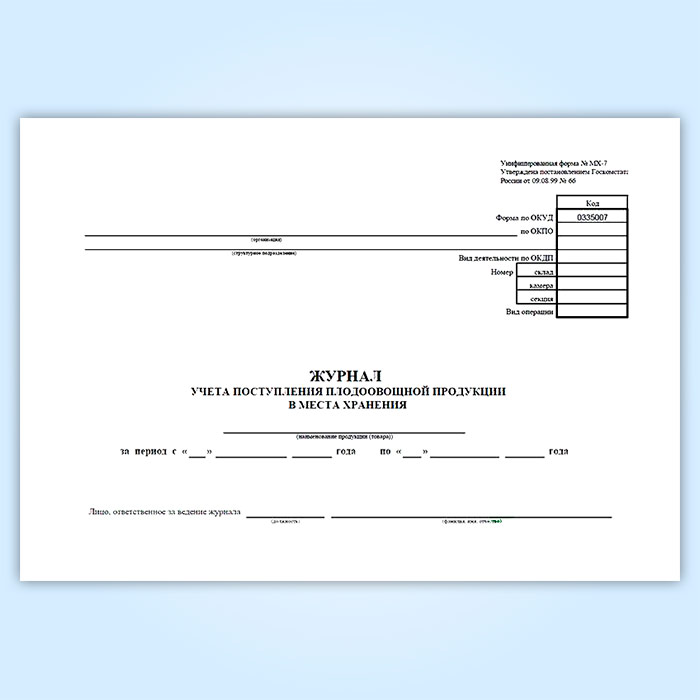 Журнал учета поступления плодоовощной продукции в места хранения (форма МХ-7) в Хотьково купить