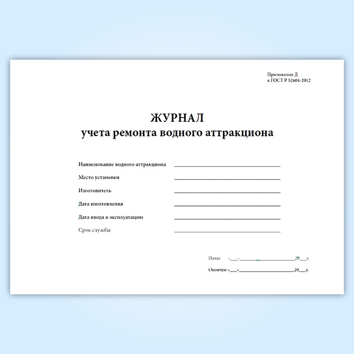 Журнал учета ремонта водного аттракциона в Хотьково купить