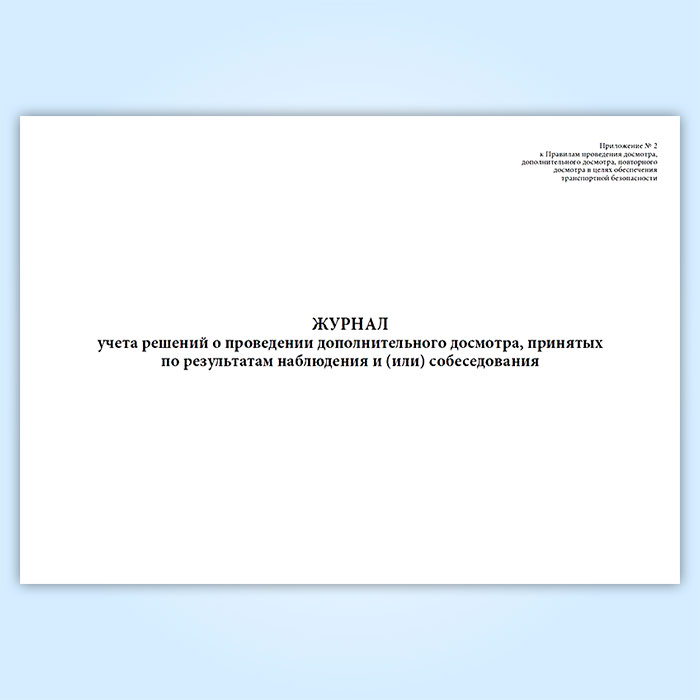 Журнал учета решений о проведении дополнительного досмотра, принятых по результатам наблюдения и (или) собеседования в Хотьково купить