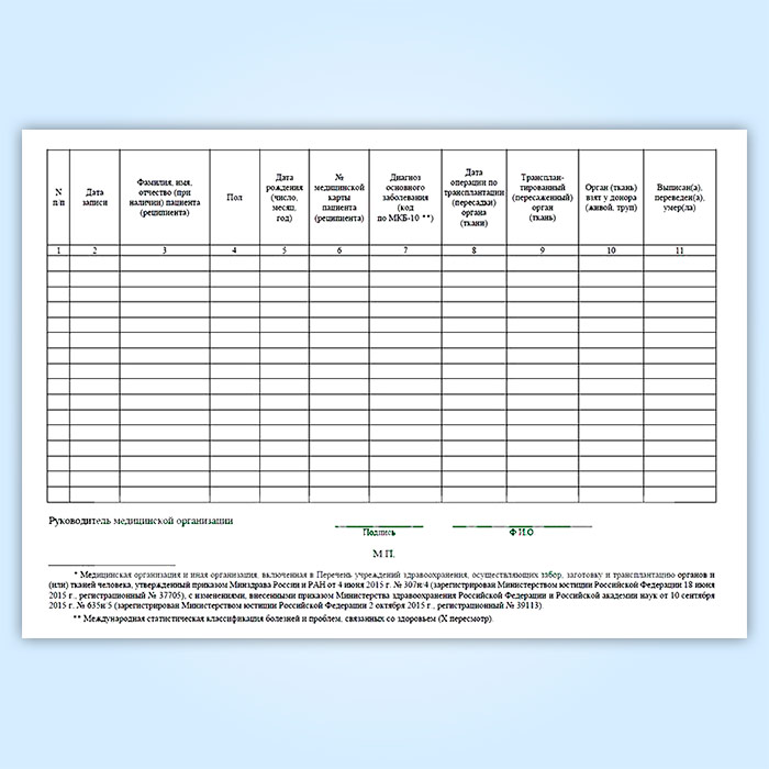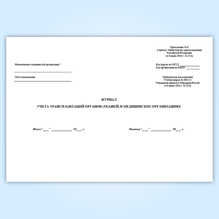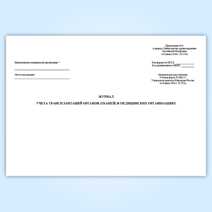 Журнал учета трансплантаций органов (тканей) в медицинских организациях (форма № 008-2/у) в Хотьково купить