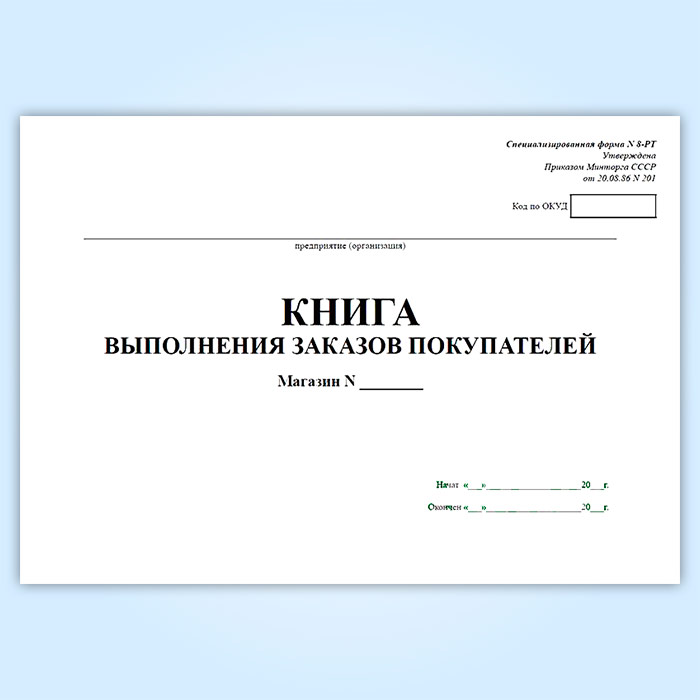 Книга выполнения заказов покупателей (специализированная форма № 8-РТ) в Хотьково купить