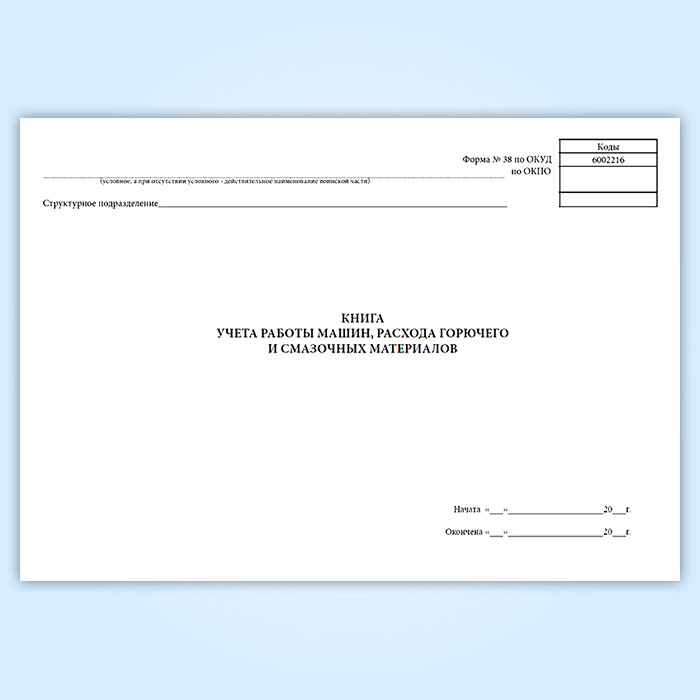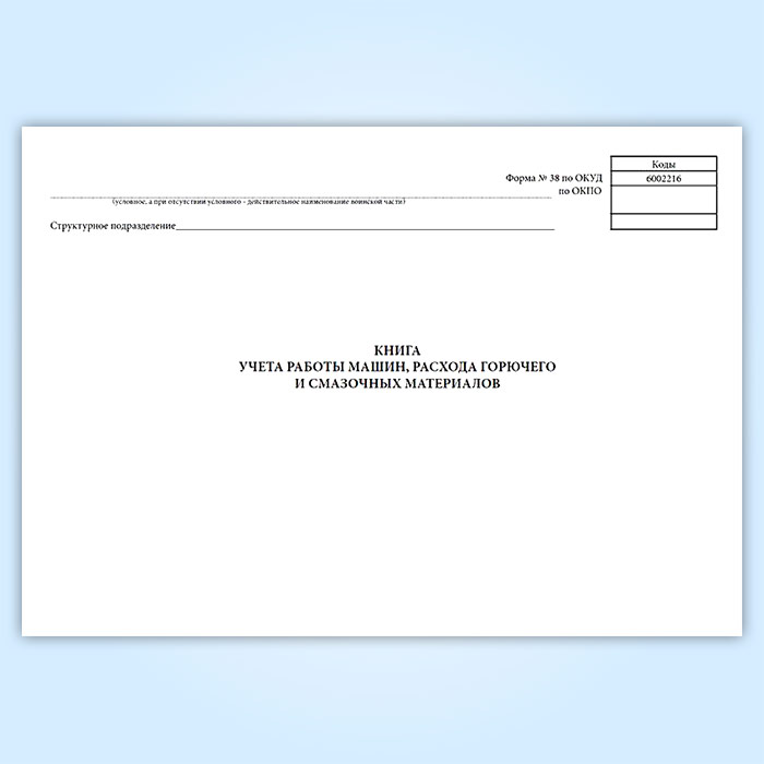 Книга учета работы машин, расхода горючего и смазочных материалов (форма 38, ОКУД 6002216) в Хотьково купить