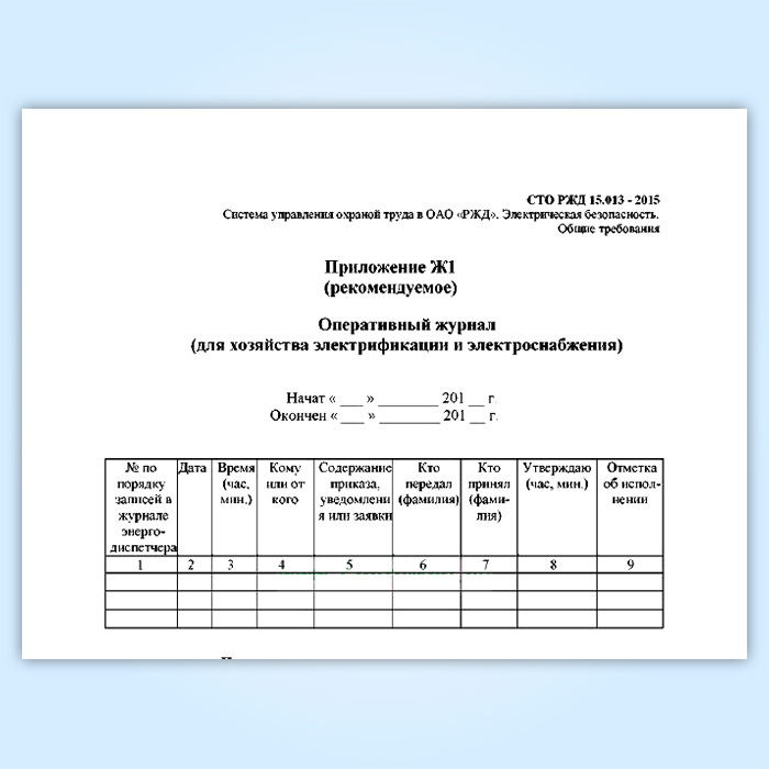 Оперативный журнал (для хозяйства электрификации и электроснабжения) (СТО РЖД 15.013-2015) в Хотьково купить