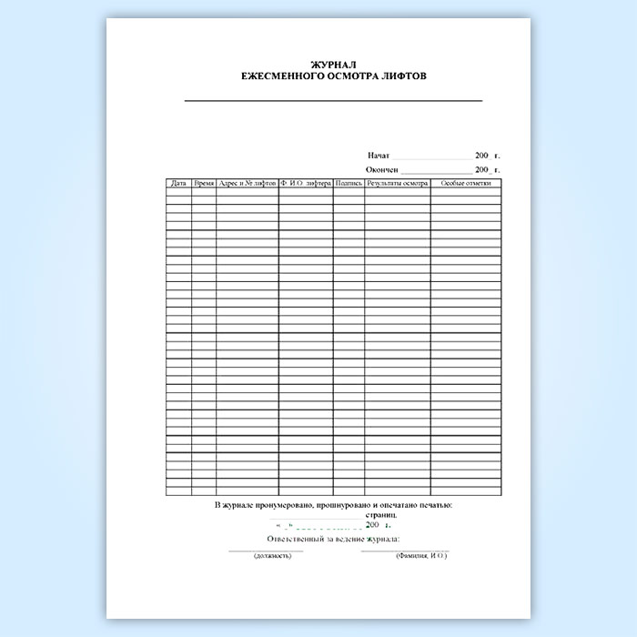 Журнал ежемесячных осмотров лифтов в Хотьково купить