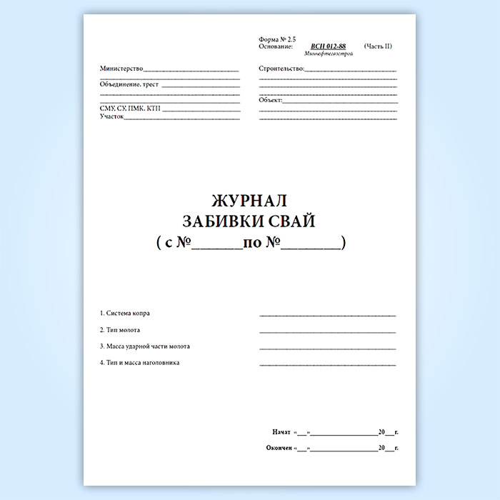 Журнал забивки свай (форма 2.5) в Хотьково купить