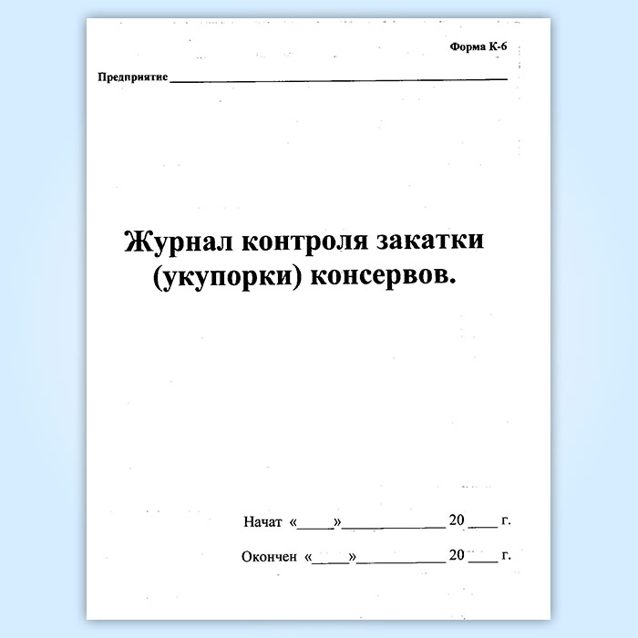 Журнал контроля закатки (укупорки) консервов (форма К-6) в Хотьково купить