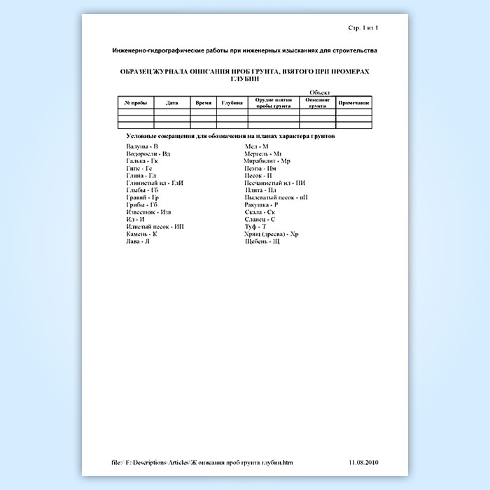 Журнал описания проб грунта, взятого при промерах в Хотьково купить