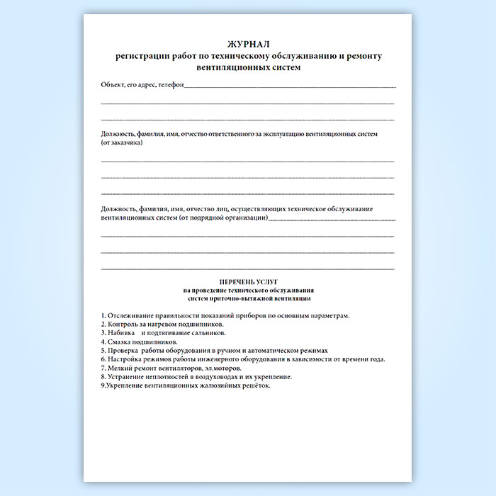 Журнал по техническому обслуживанию вентиляционных систем (систем кондиционирования) в Хотьково купить