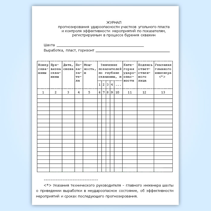 Журнал прогнозирования удароопасности участков угольного пласта и контроля эффективности мероприятий по показателям, регистрируемым в процессе бурения скважин в Хотьково купить