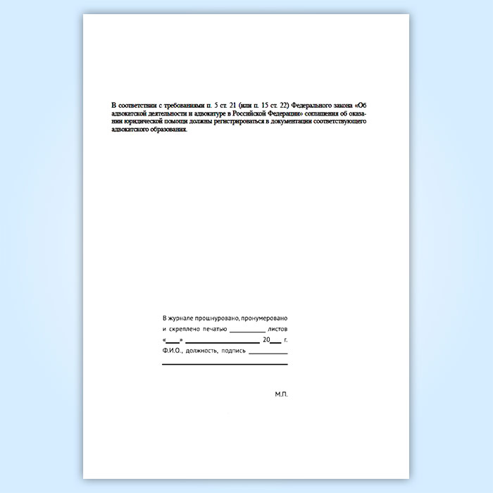 Журнал регистрации соглашений об оказании юридической помощи, заключаемых адвокатами с гражданами и юридическими лицами в Хотьково купить