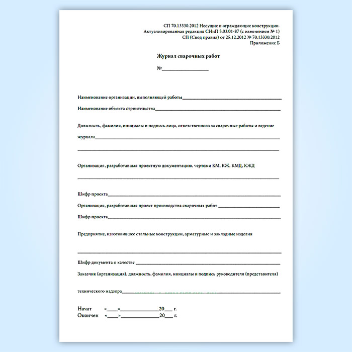 Журнал сварочных работ (приложение к СП 70.13330.2012) в Хотьково купить