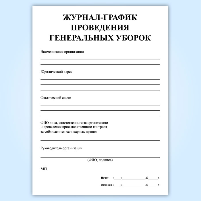 Журнал-график проведения генеральных уборок в Хотьково купить