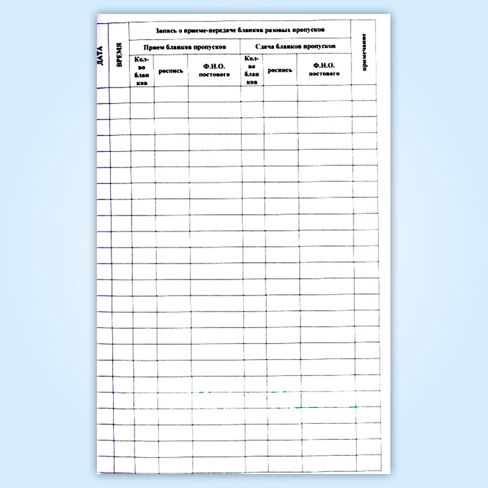 Книга приема и сдачи бланков разовых пропусков на посту КПП физических лиц в Хотьково купить