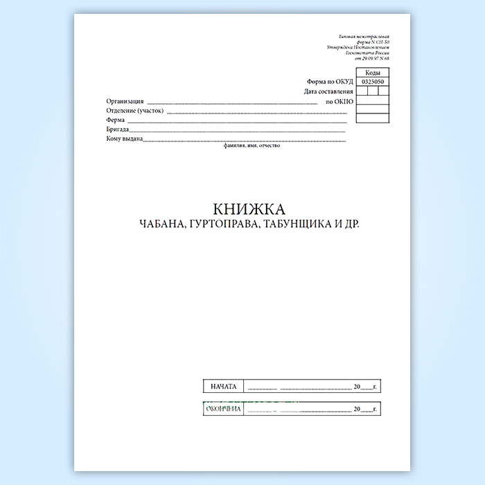 Книжка чабана, гуртоправа, табунщика и др. (форма № СП-50) в Хотьково купить