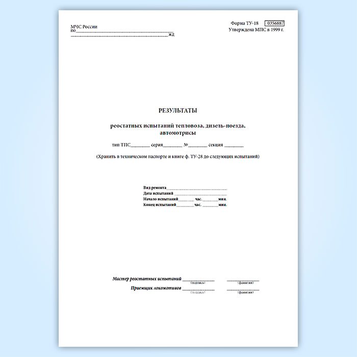 Результаты реостатных испытаний тепловоза, дизель-поезда, автомотрисы (форма ТУ-148) в Хотьково купить