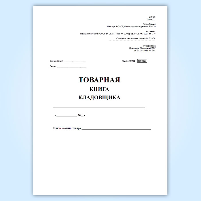Товарная книга кладовщика. Специализированная (форма № 22-ОН) в Хотьково купить