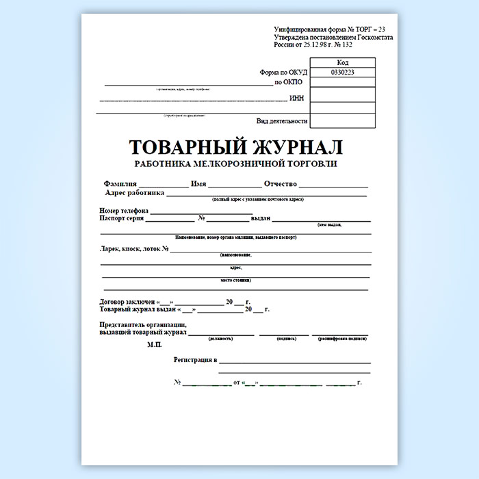 Товарный журнал работника мелкорозничной торговли (форма № ТОРГ-23) в Хотьково купить