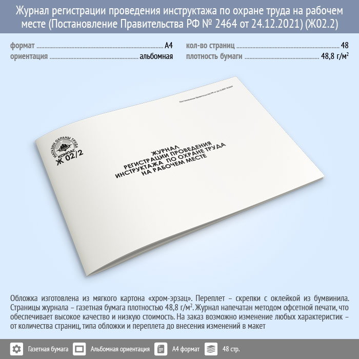 Журнал регистрации проведения инструктажа по охране труда на рабочем месте (Постановление Правительства РФ № 2464 от 24.12.2021) (48 стр., Ж02.2) в Хотьково купить