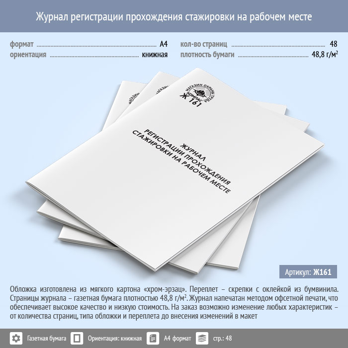 Журнал регистрации прохождения стажировки на рабочем месте (48 стр., Ж161) в Хотьково купить