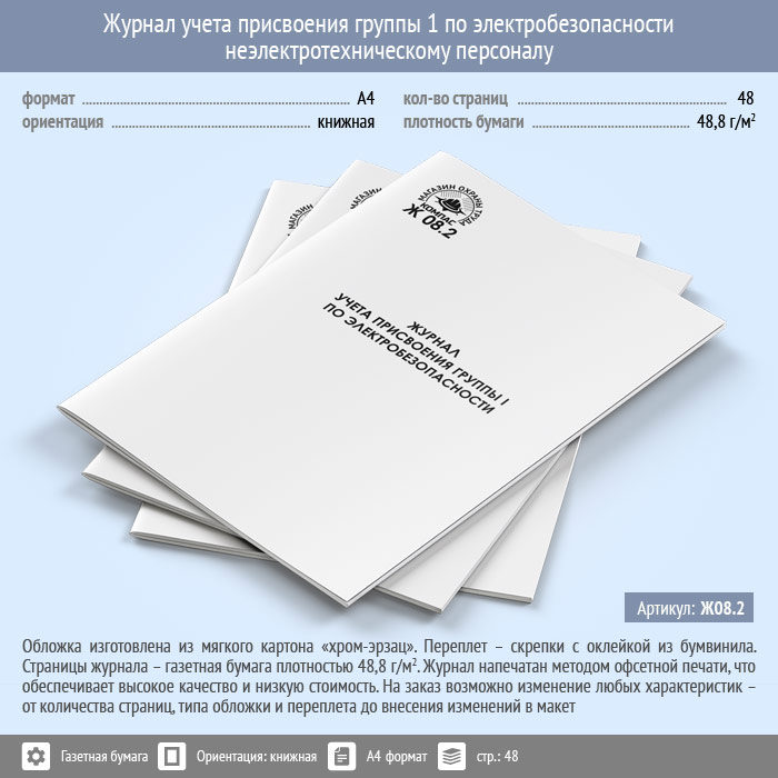 Журнал учета присвоения группы 1 по электробезопасности неэлектротехническому персоналу (48 стр., Ж08.2) в Хотьково купить