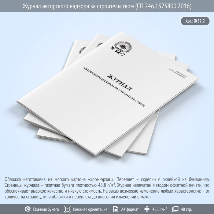 Журнал авторского надзора за строительством (СП 246.1325800.2016) (48 стр., Ж52.2) в Хотьково купить