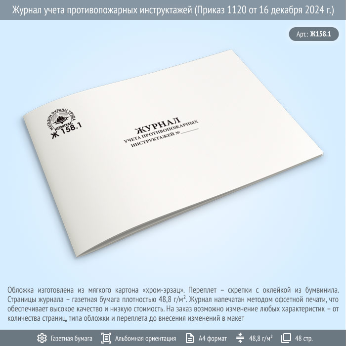 Журнал учета противопожарных инструктажей (Приказ 1120 от 16 декабря 2024 г.) (48 стр., Ж158.1) в Хотьково купить