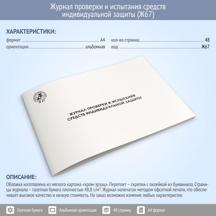 Журнал проверки и испытания средств индивидуальной защиты (48 стр., Ж67) в Хотьково купить