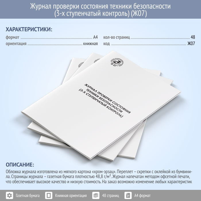 Журнал проверки состояния техники безопасности (3-х ступенчатый контроль, 48 стр., Ж07) в Хотьково купить